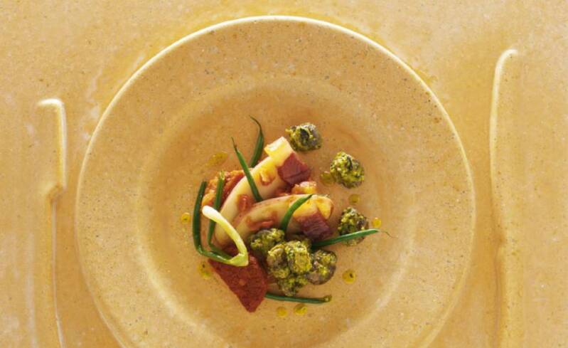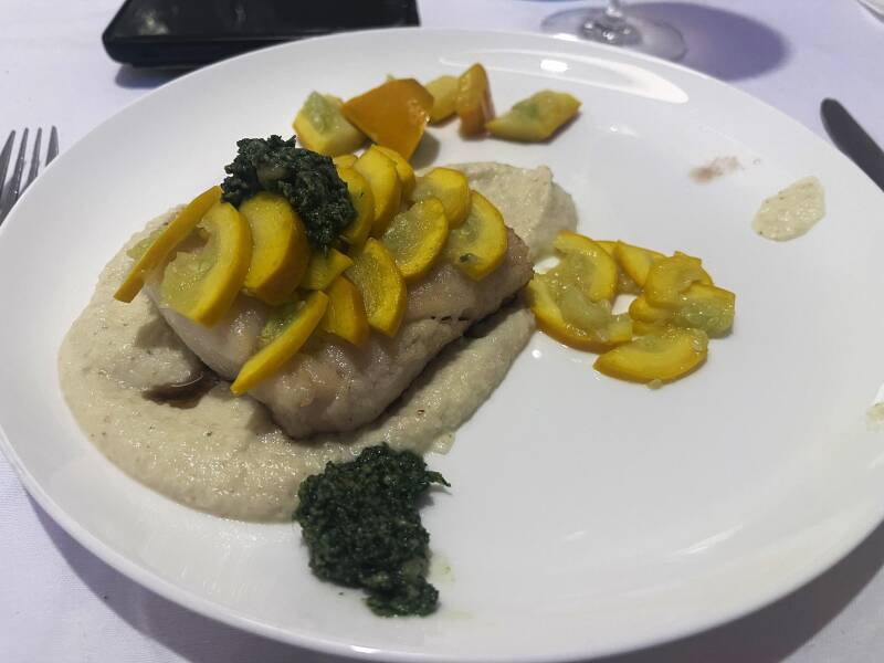 Zeeduivel met gele courgette, knolselderijpuree en salsa verde