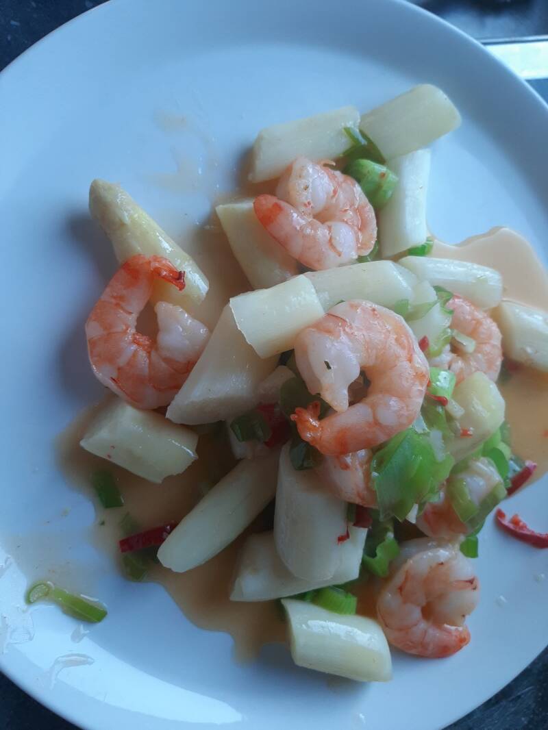Gewokte asperges met scampi's