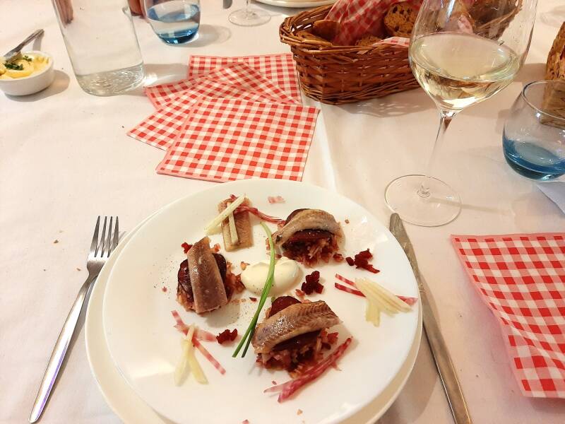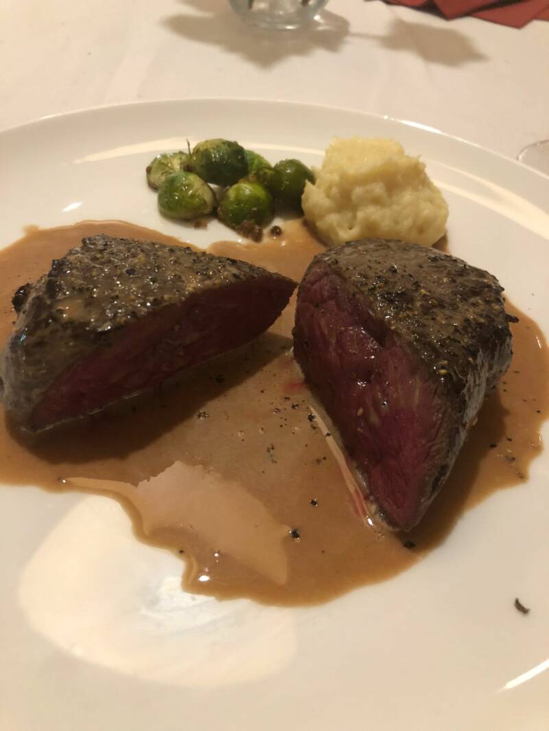 Rechtsonder: Hazenrugfilet met Portsaus.