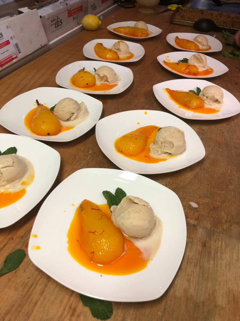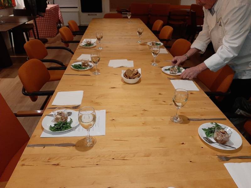 We koken deze maand maar met slechts 6 personen(vakantie en cursus en Corona virus) (vandaar geen tussengerecht) We zijn benieuwd hoe het ons gaat bevallen op onze nieuwe locatie!!