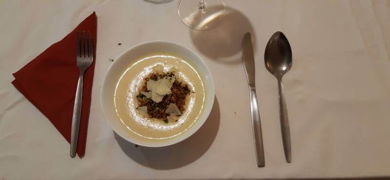 Linksond.: Pastinaaksoepje met gerookte Paling