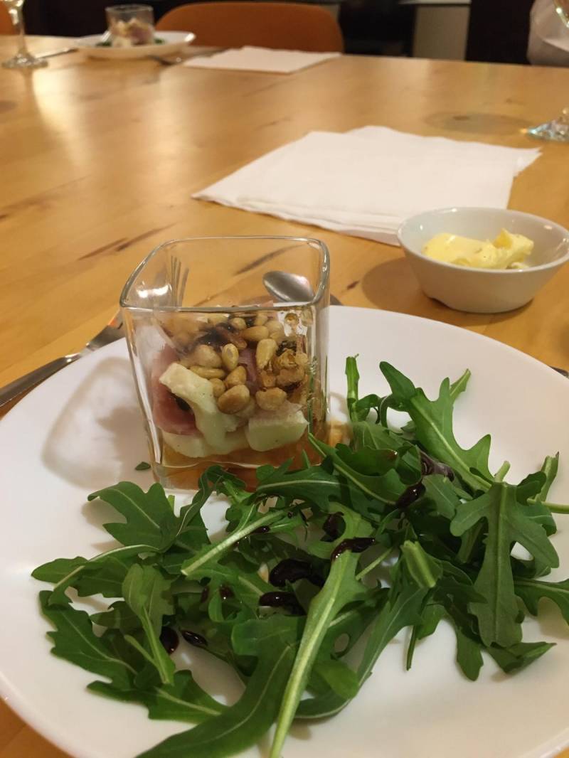 Amuse: Geitenkaas, Ganda ham en abrikozen