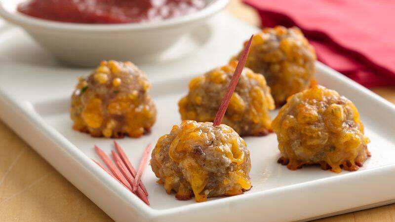 American sausage-cheese balls met dips
