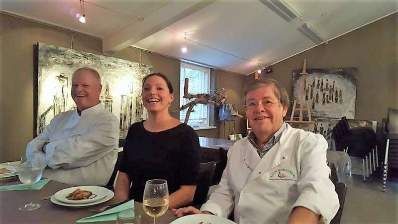 Hierboven, van links naar rechts..Amuse(Toine), voorgerecht(chef Herman), hoofdgerecht(Jan en Harrie) en tot slot het nagerecht(Ad).