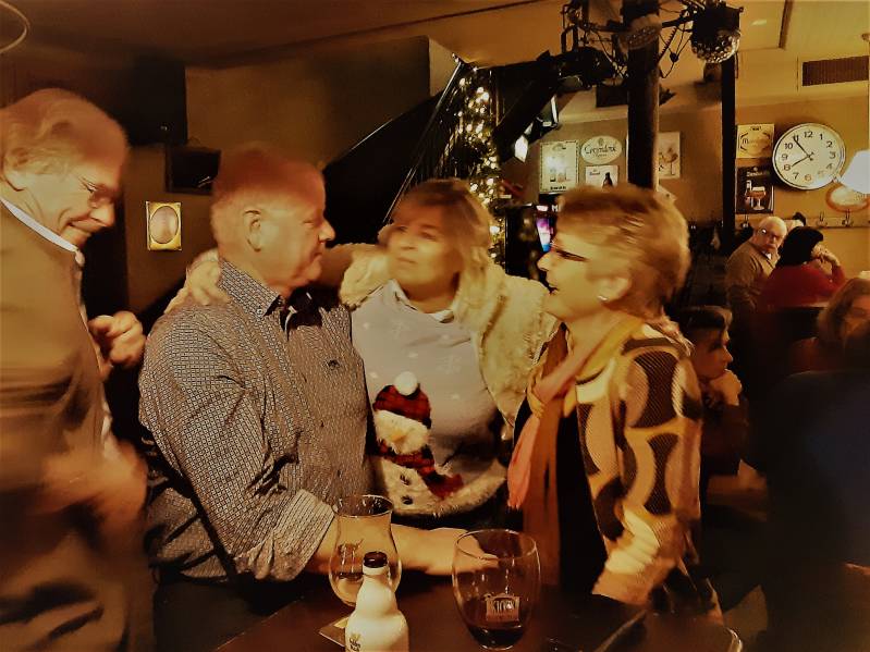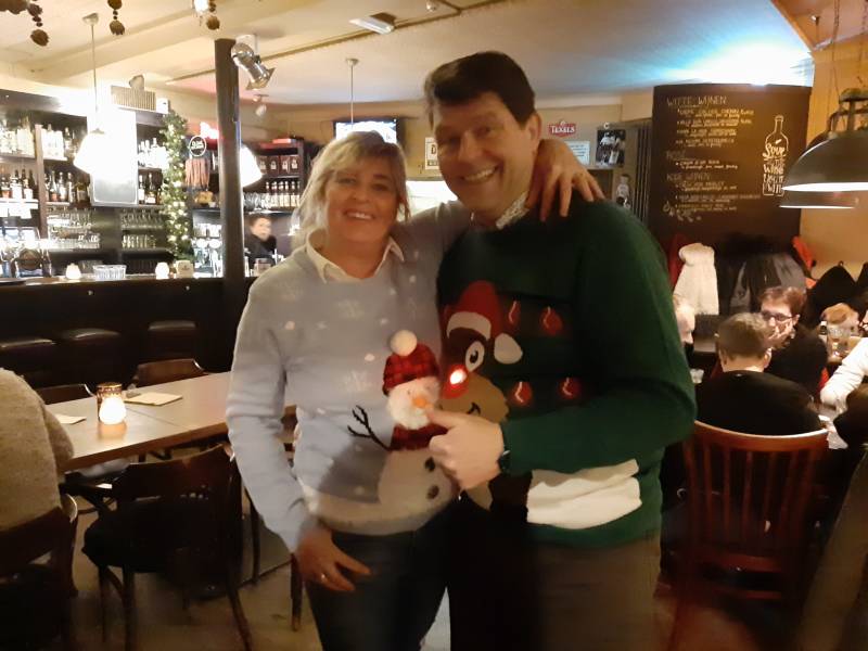 Ondertussen hebben we ook onze traditionele oudejaars-borrel gehad waar weer diverse leden aanwezig waren, en het was natuurlijk zoals gewoonlijk een super gezellige avond in "de Kiosk" Hieronder enkele sfeerfoto's. Jan en Astrid hadden er zelfs een speciale kersttrui voor aangetrokken