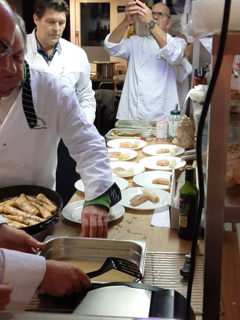 Afgelopen dinsdag, 9 april , hebben we weer gekookt, onze chef had dit keer speciaal de asperges in het menu verwerkt.