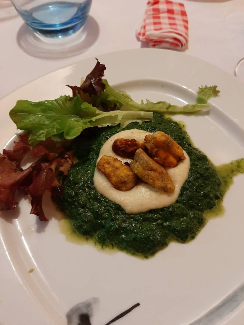In boter gebakken zwezerik met tuinbonen en truffelpasta
