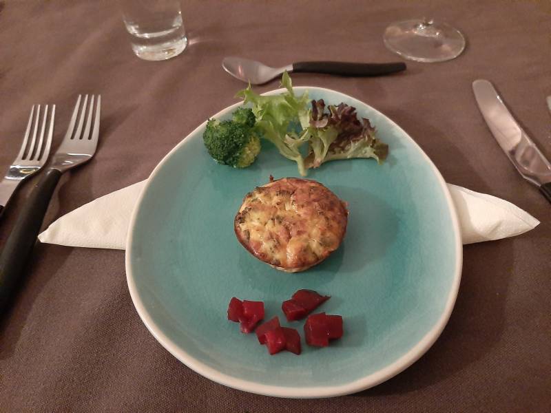 Hierboven een afbeelding van Joyce van Huijgevoort van het door haar gemaakte voorgerecht, wat wij aan ons menu hebben toegevoegd...