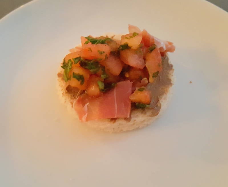 - Op het midden van de toastjes wat tomatenblokjes verdelen.