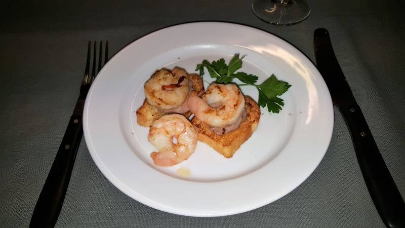 - Verdeel over elk stukje brood 1 theelepel tapenade en 2 garnalen met daartussen een blaadje peterselie.