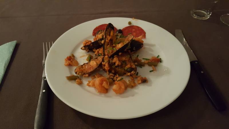- Bak de scampi in een pan met wat olie en voeg daarna de scampi ook toe bij de paella.