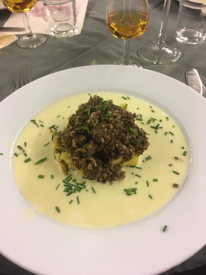 Vul deze tot de helft met puree en dek daarna af met een laagje haggis.