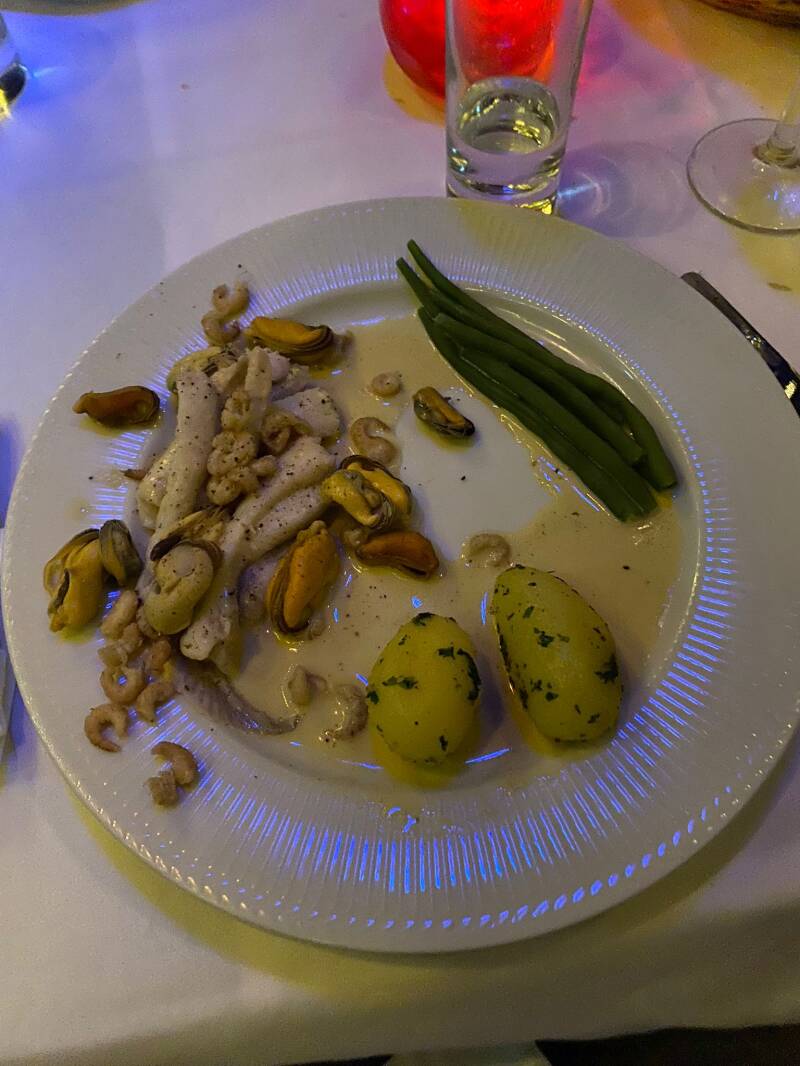 - Verdeel de mosselen, garnalen en de saus over de vis.