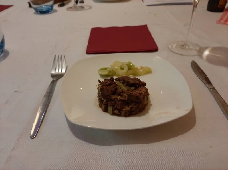 - Snijd de lever in stukjes met een groot, zwaar mes. Meng de lever dan door de prei en serveer direct.