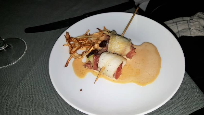 Rol de zeetongfilets vast op en leg in een braadslede. Laat garen in de oven: 15 minuten op 150 °C.