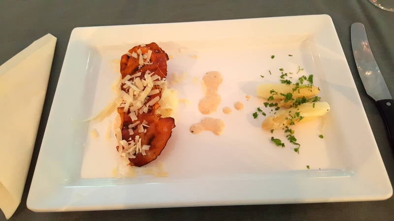 - 800 gr (niet te dunne!) witte asperges, geschild