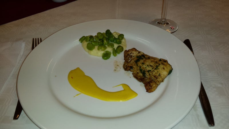 Tongscharfilet met saffraansaus en aardappelmousseline (10p)
